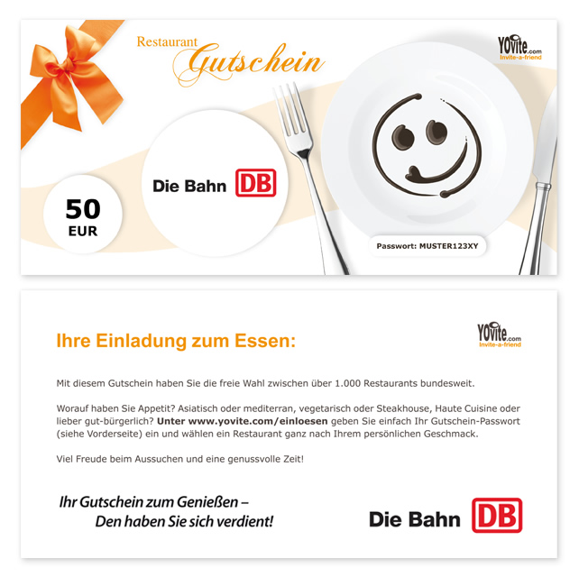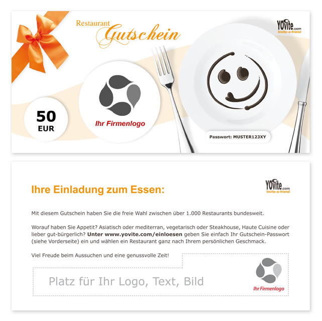 Individuelle Situationen erfordern individuelle Lösungen. Geschenkanlässe gibt es im Firmenalltag nicht nur zu Weihnachten. Häufig ist eine spontane Geschenkidee für Mitarbeiter gefragt. Oft ist auch die Zeit knapp. Mit den "aktivierbaren" Restaurant Gutscheinen beziehungsweise Mitarbeiter Essensgutscheinen haben Sie die geschmackvolle und jederzeit einsatzbereite Mitarbeiter Geschenklösung griffbereit in der Schublade!