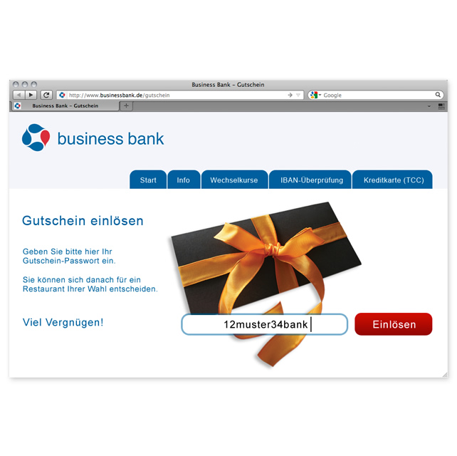 Erst bei Geschenkbedarf kann der Gutschein schnell per Aktivierungscode mit dem gewünschten Wert aufgeladen und zum Beispiel in einer Grußkarte an den Mitarbeiter überreicht, verschickt und verschenkt werden.